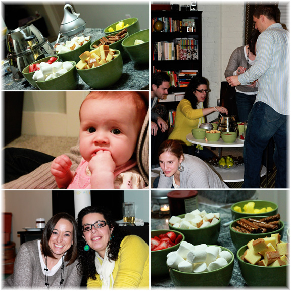 We did dessert fondue with all sorts of dippings- strawberries, bananas, pound cake, brownies, angel food cake, marshmallows, pineapple, pretzels. Oh SO good.